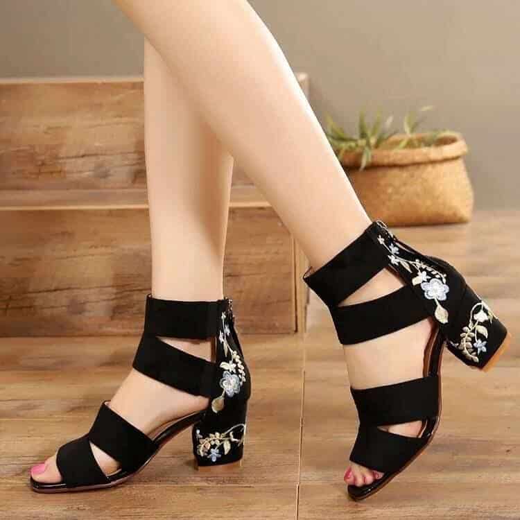 Ethnic style embroidered mid-heel sandals