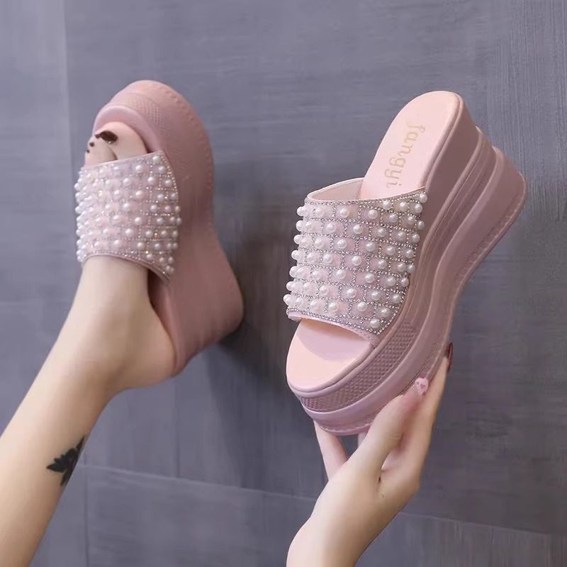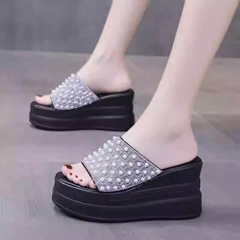 Fashionable high heel slippers for women