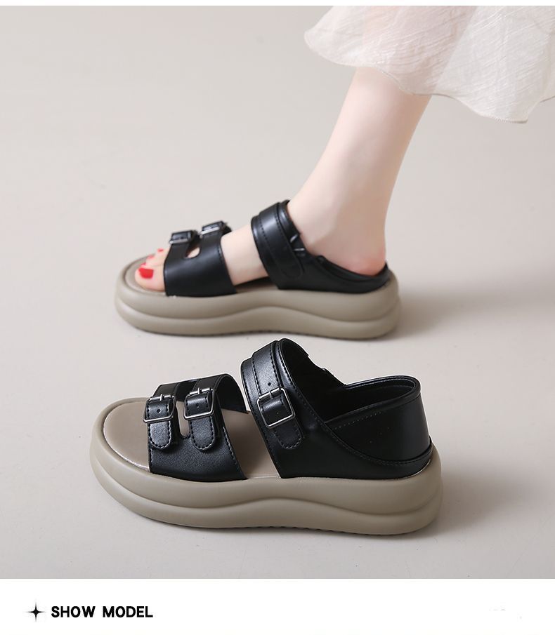 Belt buckle decorated thick-soled covered heel sandals for women