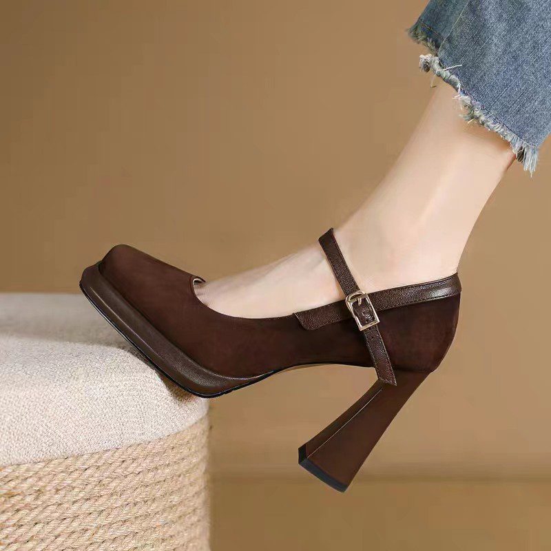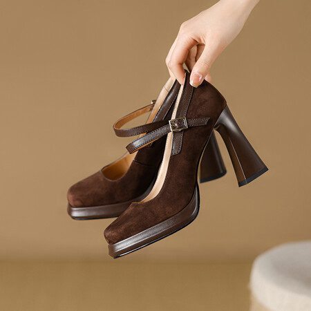 Be the first to review “Genuine leather retro brown waterproof platform thick heel” Cancel reply