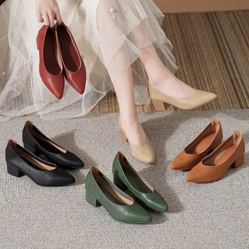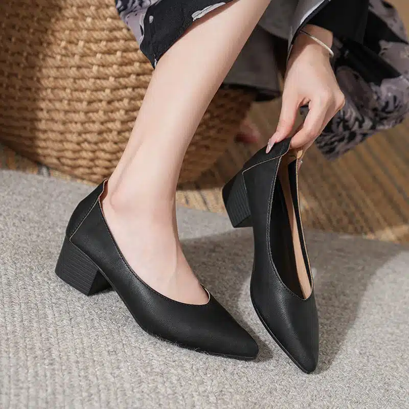 Be the first to review “Genuine leather shoes thick heel pointed toe single shoes” Cancel reply