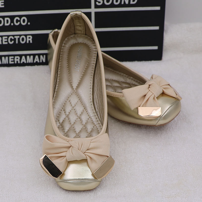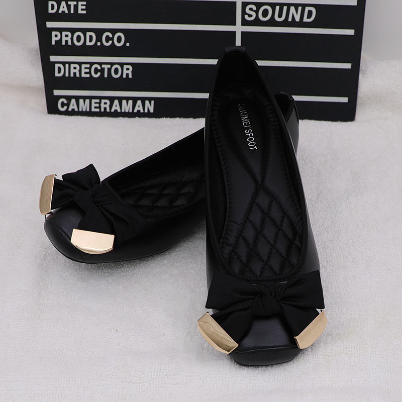 Spring and autumn new all-match shallow mouth flat bow scoop shoes