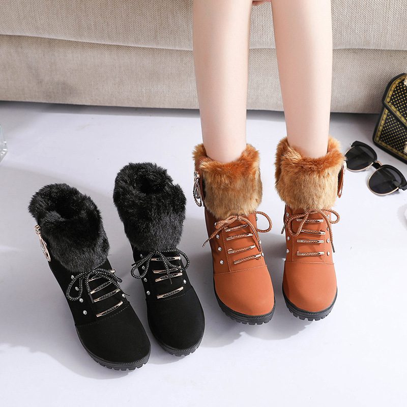 Women’s boots rhinestone woolen mouth