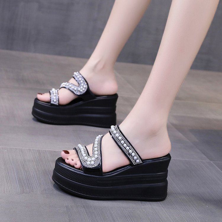 Thick-soled sandals wedge heel high heel flip flops women